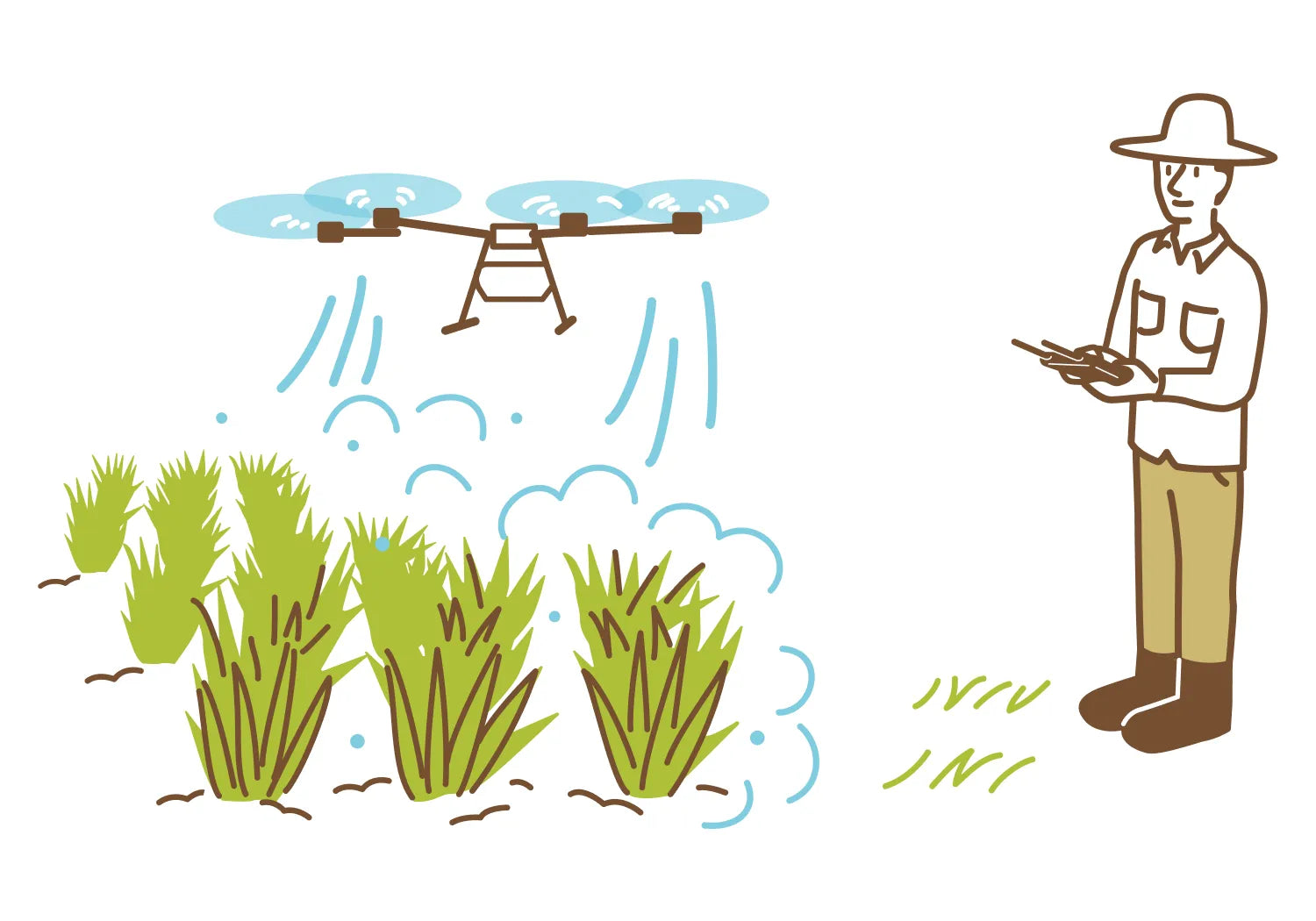 ドローンで稲の生育状況をチェックし、無駄のない低農薬栽培を実現。